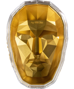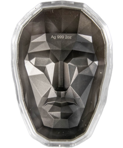 The obverse and reverse of Antique Persona Silver Stacker Sets contain the same design elements. They feature a domed design, which allows them to stack neatly on top of each other. Because one is struck with a dark antique finish and the other with a light antique finish, there will be a unique light contrast when they are stacked. The mask design itself is a variation on the Persona masks found throughout history.