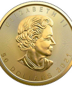 On the obverse side of 2021 1 oz Canadian Gold Maple Leaf Coins, you will find the image of Queen Elizabeth II. Since 2005, the Canadian Gold Maple Leaf has featured the fourth-generation bust of Elizabeth II that was created in 2003 by Susanna Blunt. It was just the second portrait of a British monarch for Canadian coins ever created by a Canadian artist. The design shows the Queen in right-profile relief without a crown.